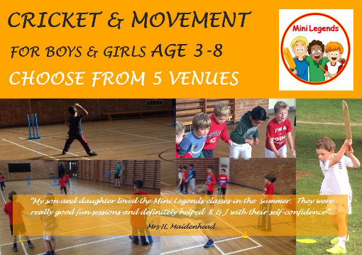 The highly popular cricket and movement courses for boys and girls aged 3-8 are available in four venues for this summer and will all take place on Saturday mornings.