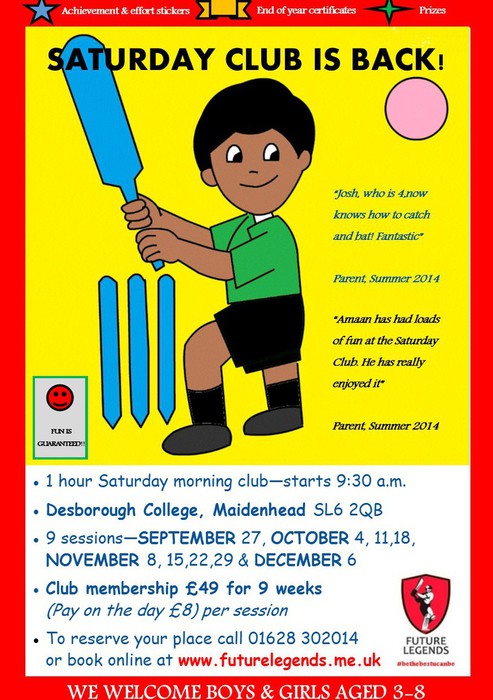 The ever popular Saturday Club, which caters for boys and girls aged 3-8, starts its new term on Saturday 27th September.